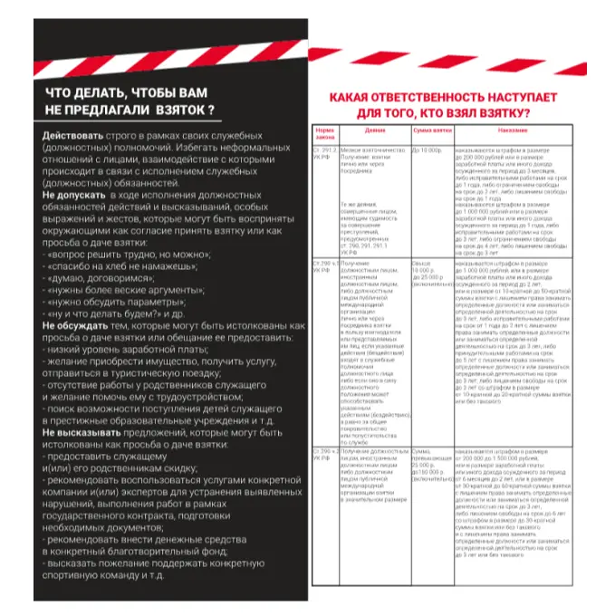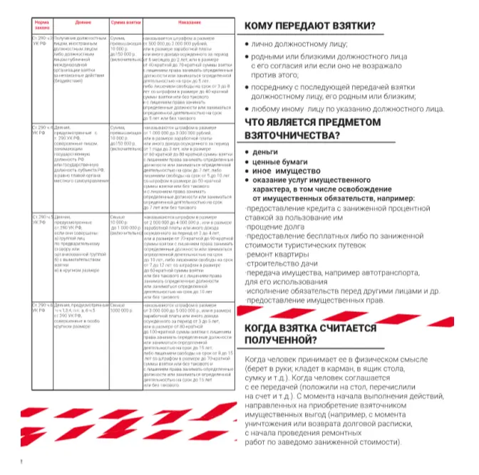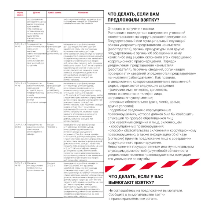Памятка по предотвращению случаев получения и дачи взятки